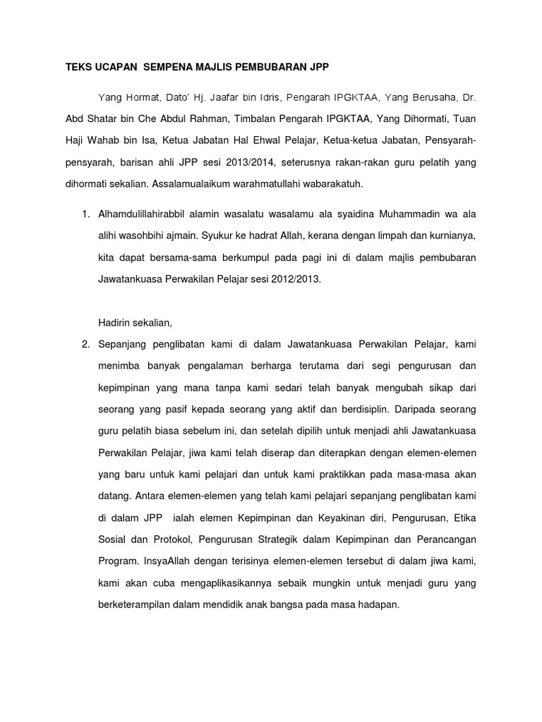 Teks ucapan yang hormat profesor dato dr daing nasir ibrahim naib canselor universiti malaysia pahang sempena majlis penyerahan watikah pelantikan majlis mengangkat sumpah jawatan ahli ahli majlis perwakilan pelajar universiti malaysia pahang sesi 20082009. Ribuan terima kasih juga saya ucapkan kepada. Majlis diteruskan lagi dengan mempersilakan Presiden Majlis Perwakilan Pelajar Tingkatan 6 yang juga merupakan Ketua Umum SAMTTAR SAUDARA MUHAMMAD HARRIS SYAZWAN BIN ISMAIL untuk menyampaikan ucapan.